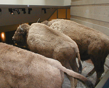 A closer shot of the stuffed buffalo at the top of the mock cliff.