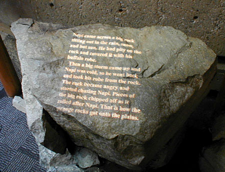 they taught Blackfoot mythology by projecting words on rocks. It looked really