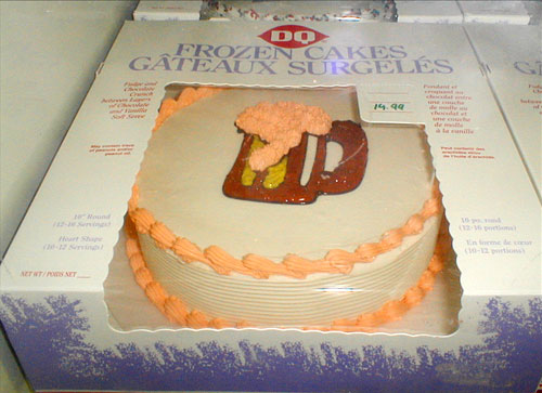 Only in Canada. An ice cream cake with a picture of beer on it.